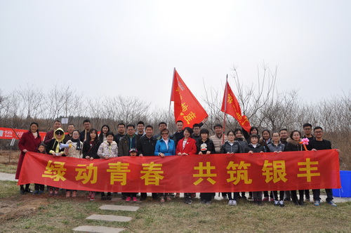 2016年3月12日,銀豐集團工會、銀豐集團團委、銀豐地產(chǎn)集團團總支聯(lián)合主辦的“綠動青春、共筑銀豐”義務(wù)植樹活動在銀豐唐郡圍子山舉行。銀豐集團副總裁彭秀玲、青年員工等60余人參加?;顒痈吮姸嚆y豐地產(chǎn)新老業(yè)主前來參加。